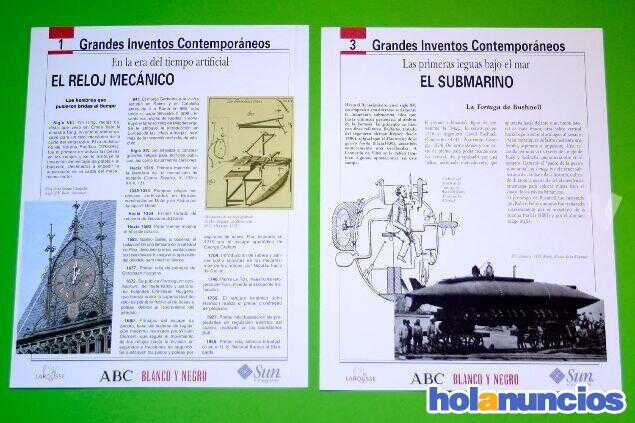 - Vendo carpeta con la colección completa de 10 láminas sobre los Grandes Inventos Contemporáneos publicado en el año 1998 por ABC y la revista Blanco y Negro, impresas a todo color en cartulina gru ... 02-23