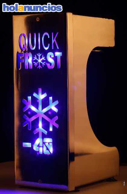 La escarchadora o congelador enfriador de copas de la empresa QUICK FROST, congela una copa o vaso en 5 segundos al instante. Ideal para preparar el mejor Gin Tonic. Diferenciese de la competencia. Aumenta claramente los clientes del bar. Restaurantes como Argiñano, Berasategui, Platea Madrid. . . y multinacionales como Schweppes, Tanqueray. . tienen nuestras máquinas. Se envia en 24 horas. Somos fabricante y tenemos el mejor precio. VER VíDEOS EN LA WED www. quickfrost. es